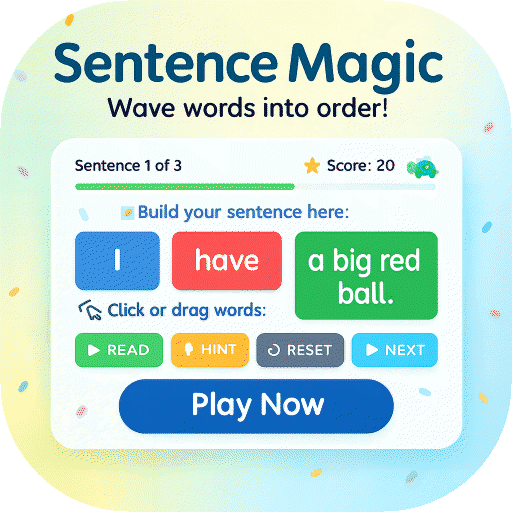 This game is built around sentence patterns to help learners understand grammatical structures. Each tile is color-coded by its grammatical role:
